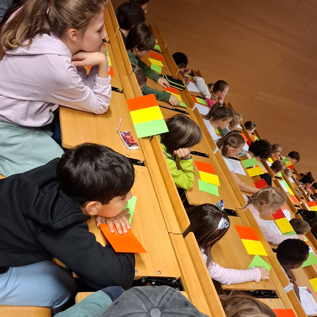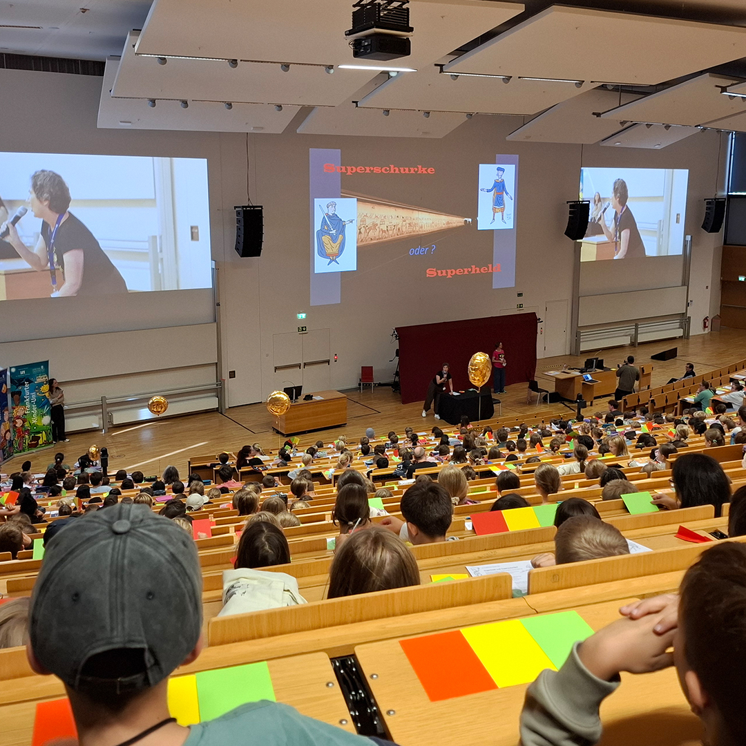 Dieses Kunstwerk aus dem 11. Jahrhundert erzählt auf 68 Metern Länge von der Eroberung Englands durch die Normannen. Dabei wurde die spannende Frage gestellt, wer denn in dieser Historie der Superheld und wer der Superschurke war. Die SchülerInnen haben die aufregende Fahrt toll gemeistert und konnten dabei Universitätsluft mit allem Drum und Dran schnuppern! Ich hatte den Eindruck, die Kinder sind an diesem Tag um ein deutliches Stück gewachsen. (Frau Neumann, Leiterin der Grundschule)